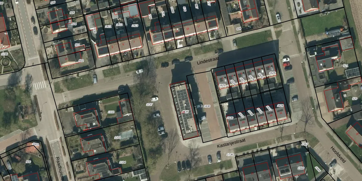 Het perceel waarop Kastanjestraat 15 staat heeft een oppervlakte van 300 m². Dit is een groot perceel. De perceeloppervlakte wordt geregistreerd door het Kadaster. Gedetailleerde informatie over de maten van dit perceel kunt u vinden in het rapport Kadastrale kaart met maatvoering van Kastanjestraat 15.