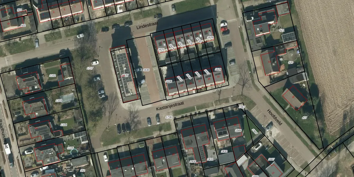 Kastanjestraat 21 is gelegen op kadastraal perceel ABG00C1636. Deze kadastrale aanduiding is uniek en wordt gebruikt door het Kadaster om eigendomsrechten en andere zakelijke rechten vast te leggen. Het perceel maakt onderdeel uit van de kadastrale gemeente Aalburg.