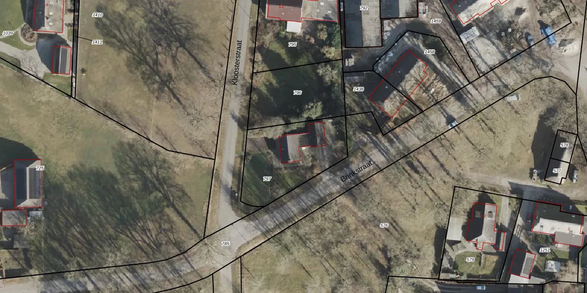 Brinkstraat 1 is gelegen op kadastraal perceel ALO00W797. Deze kadastrale aanduiding is uniek en wordt gebruikt door het Kadaster om eigendomsrechten en andere zakelijke rechten vast te leggen. Het perceel maakt onderdeel uit van de kadastrale gemeente Anloo.