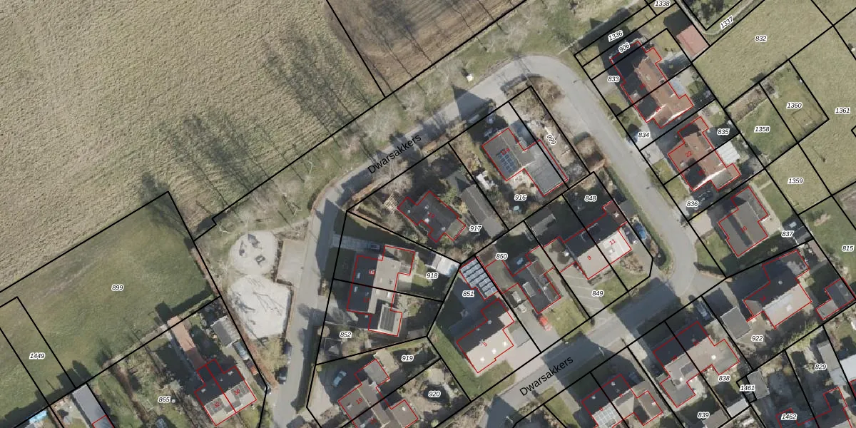 Het perceel waarop Dwarsakkers 13 staat heeft een oppervlakte van 531 m². Dit is een groot perceel. De perceeloppervlakte wordt geregistreerd door het Kadaster. Gedetailleerde informatie over de maten van dit perceel kunt u vinden in het rapport Kadastrale kaart met maatvoering van Dwarsakkers 13.
