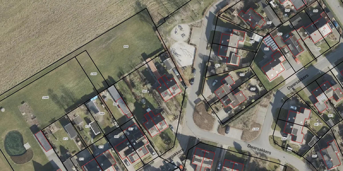 Het perceel waarop Dwarsakkers 30 staat heeft een oppervlakte van 1453 m². Dit is een zeer groot perceel. De perceeloppervlakte wordt geregistreerd door het Kadaster. Gedetailleerde informatie over de maten van dit perceel kunt u vinden in het rapport Kadastrale kaart met maatvoering van Dwarsakkers 30.