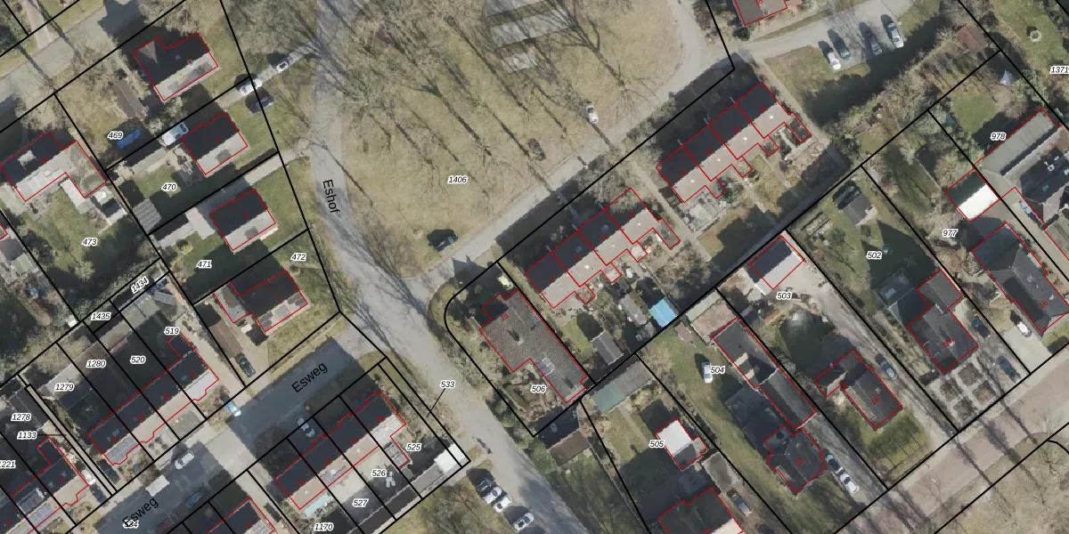 Het perceel waarop Eshof 2 staat heeft een oppervlakte van 5450 m². Dit is een zeer groot perceel. De perceeloppervlakte wordt geregistreerd door het Kadaster. Gedetailleerde informatie over de maten van dit perceel kunt u vinden in het rapport Kadastrale kaart met maatvoering van Eshof 2.