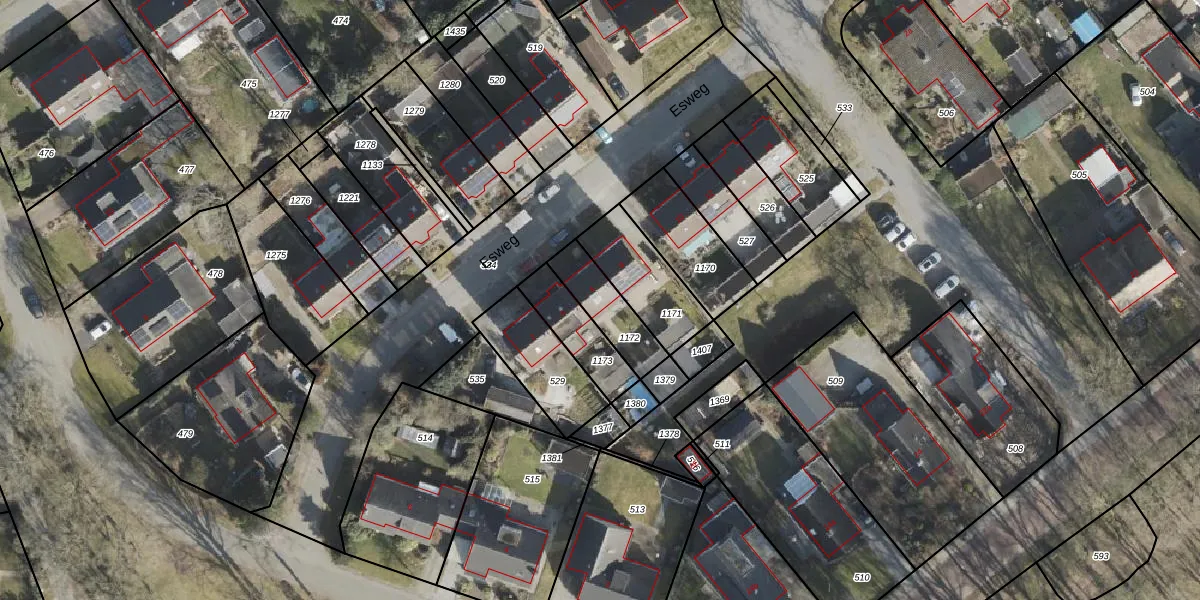 Esweg 6 is gelegen op kadastraal perceel ALO00W1172. Deze kadastrale aanduiding is uniek en wordt gebruikt door het Kadaster om eigendomsrechten en andere zakelijke rechten vast te leggen. Het perceel maakt onderdeel uit van de kadastrale gemeente Anloo.