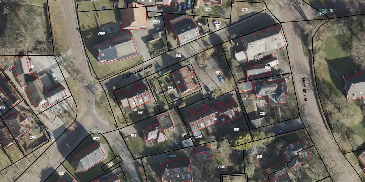 Fabrieksstraatje 16 is gelegen op kadastraal perceel ALO00W764. Deze kadastrale aanduiding is uniek en wordt gebruikt door het Kadaster om eigendomsrechten en andere zakelijke rechten vast te leggen. Het perceel maakt onderdeel uit van de kadastrale gemeente Anloo.
