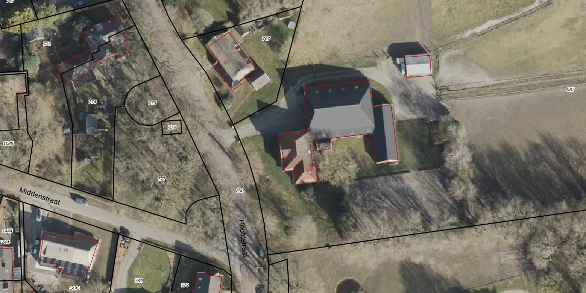 Het perceel waarop Hoofdstraat 25 staat heeft een oppervlakte van 1,7 ha. Dit is een zeer groot perceel. De perceeloppervlakte wordt geregistreerd door het Kadaster. Gedetailleerde informatie over de maten van dit perceel kunt u vinden in het rapport Kadastrale kaart met maatvoering van Hoofdstraat 25.