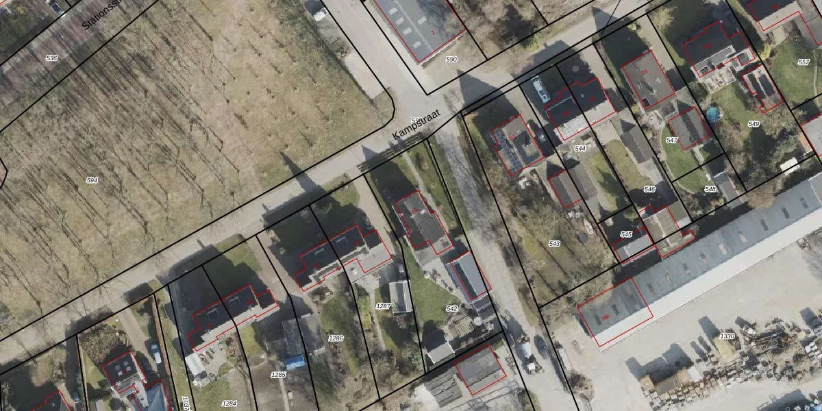 Het perceel waarop Kampstraat 16 staat heeft een oppervlakte van 910 m². Dit is een groot perceel. De perceeloppervlakte wordt geregistreerd door het Kadaster. Gedetailleerde informatie over de maten van dit perceel kunt u vinden in het rapport Kadastrale kaart met maatvoering van Kampstraat 16.