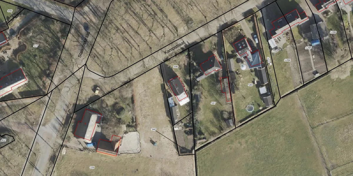 Het perceel waarop Kampstraat 2 staat heeft een oppervlakte van 510 m². Dit is een groot perceel. De perceeloppervlakte wordt geregistreerd door het Kadaster. Gedetailleerde informatie over de maten van dit perceel kunt u vinden in het rapport Kadastrale kaart met maatvoering van Kampstraat 2.