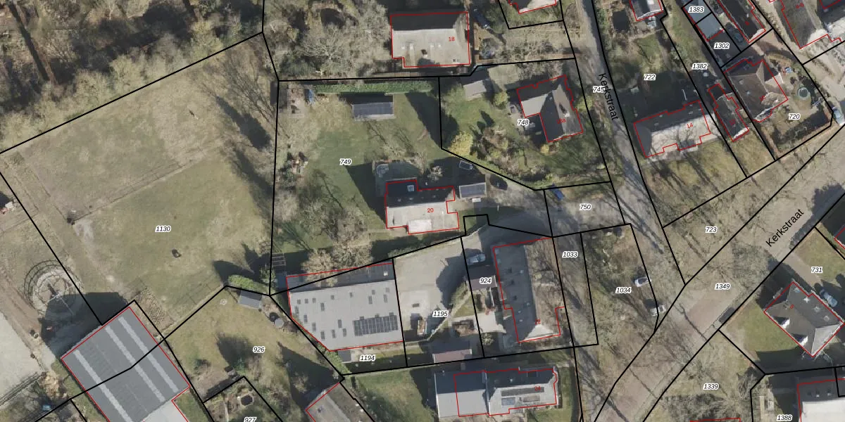 Kerkstraat 20 is gelegen op kadastraal perceel ALO00W749. Deze kadastrale aanduiding is uniek en wordt gebruikt door het Kadaster om eigendomsrechten en andere zakelijke rechten vast te leggen. Het perceel maakt onderdeel uit van de kadastrale gemeente Anloo.