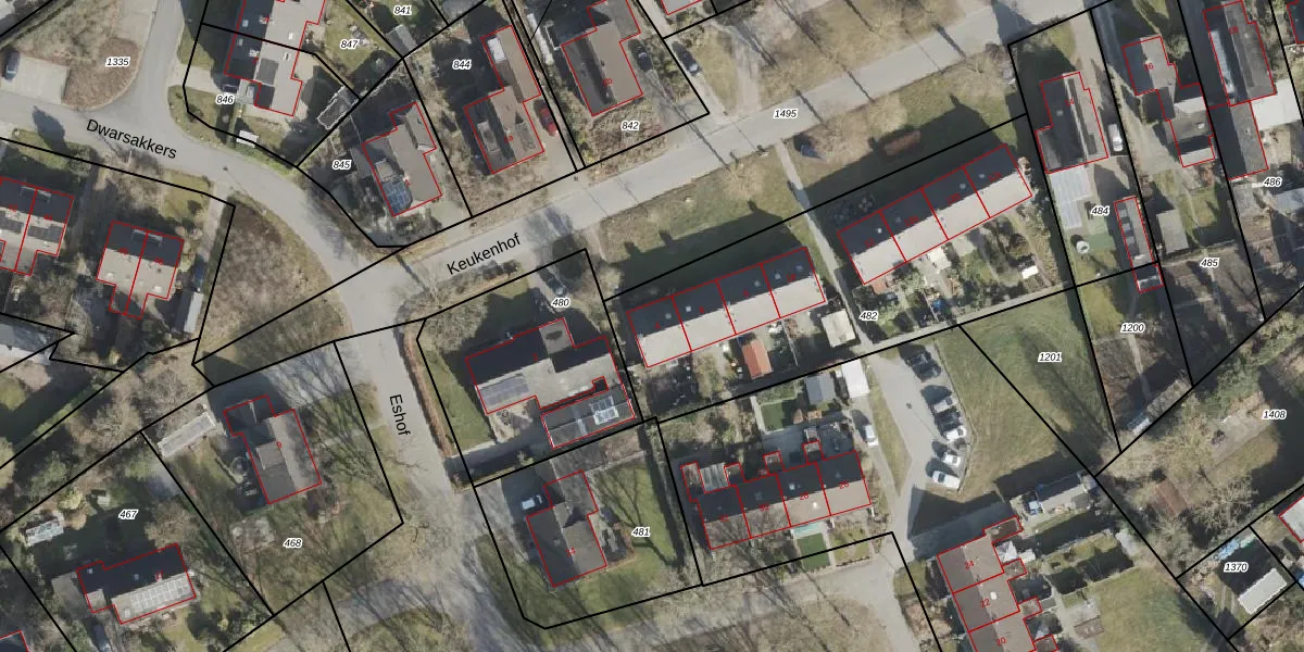 Het perceel waarop Keukenhof 4 staat heeft een oppervlakte van 1677 m². Dit is een zeer groot perceel. De perceeloppervlakte wordt geregistreerd door het Kadaster. Gedetailleerde informatie over de maten van dit perceel kunt u vinden in het rapport Kadastrale kaart met maatvoering van Keukenhof 4.
