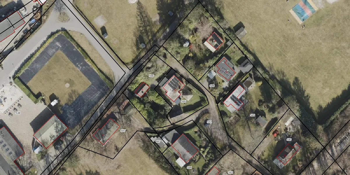 Het perceel waarop Schaapdijk 11 staat heeft een oppervlakte van 513 m². Dit is een groot perceel. De perceeloppervlakte wordt geregistreerd door het Kadaster. Gedetailleerde informatie over de maten van dit perceel kunt u vinden in het rapport Kadastrale kaart met maatvoering van Schaapdijk 11.