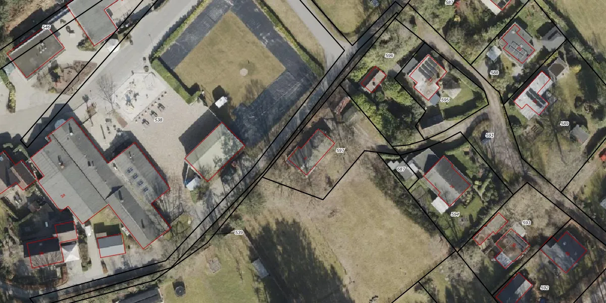 Het adres ligt op het perceel ALO00-V-597, dat zich in de kadastrale gemeente Anloo bevindt. Het perceel is kleiner dan gemiddeld in Anloo. Het perceel is 746 m² groot, terwijl het gemiddelde ligt op 1,0 ha. De grootste perceeloppervlakte in de kadastrale gemeente is 92,8 ha. De kleinste oppervlakte bedraagt 1 m². Dit is het enige adres dat aanwezig is op het perceel. In de Basisregistratie Kadaster (BRK) werden de grenzen van het perceel geregistreerd op 23-09-2002.