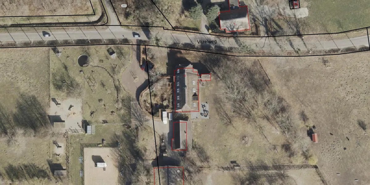 Het perceel waarop Vijzelweg 12 staat heeft een oppervlakte van 3,3 ha. Dit is een zeer groot perceel. De perceeloppervlakte wordt geregistreerd door het Kadaster. Gedetailleerde informatie over de maten van dit perceel kunt u vinden in het rapport Kadastrale kaart met maatvoering van Vijzelweg 12.