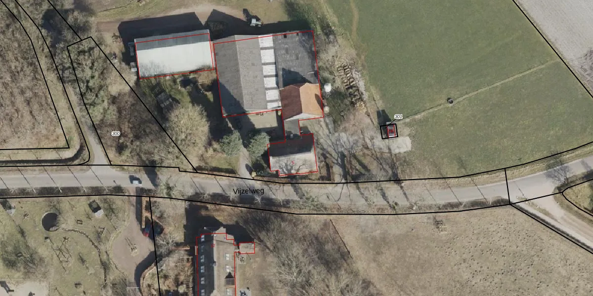 Het perceel waarop Vijzelweg 5 staat heeft een oppervlakte van 2,6 ha. Dit is een zeer groot perceel. De perceeloppervlakte wordt geregistreerd door het Kadaster. Gedetailleerde informatie over de maten van dit perceel kunt u vinden in het rapport Kadastrale kaart met maatvoering van Vijzelweg 5.