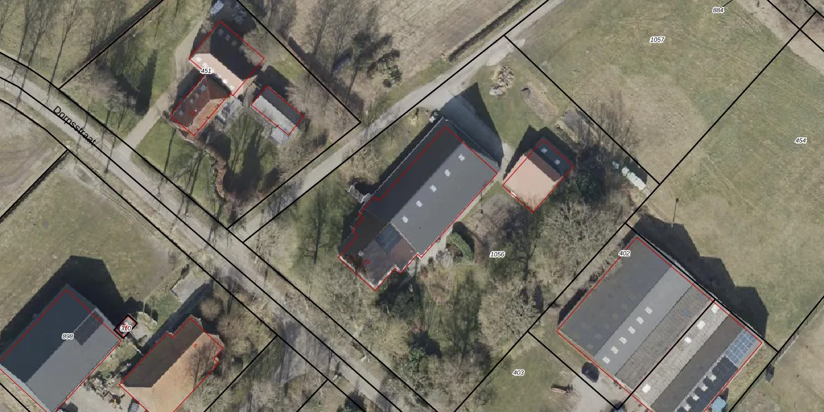 Het perceel waarop Dorpsstraat 13 staat heeft een oppervlakte van 4625 m². Dit is een zeer groot perceel. De perceeloppervlakte wordt geregistreerd door het Kadaster. Gedetailleerde informatie over de maten van dit perceel kunt u vinden in het rapport Kadastrale kaart met maatvoering van Dorpsstraat 13.