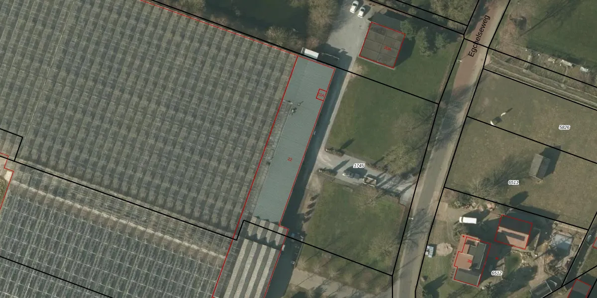 Het adres is gelegen op perceel 1745 in de sectie H en de kadastrale gemeente Helden. De kadastrale aanduiding is aldus HDN01-H-1745. De gemiddelde perceeloppervlakte in de kadastrale gemeente Helden is 4696,39 m². Dit perceel is met zijn 1,3 ha dus groter dan gemiddeld. De grootste perceeloppervlakte in de kadastrale gemeente is 28,9 ha. De kleinste oppervlakte bedraagt 0 m². Op het perceel zijn 2 adressen aanwezig. De laatste wijziging in het de Basisregistratie Kadaster (BRK) was op 08-01-2007.