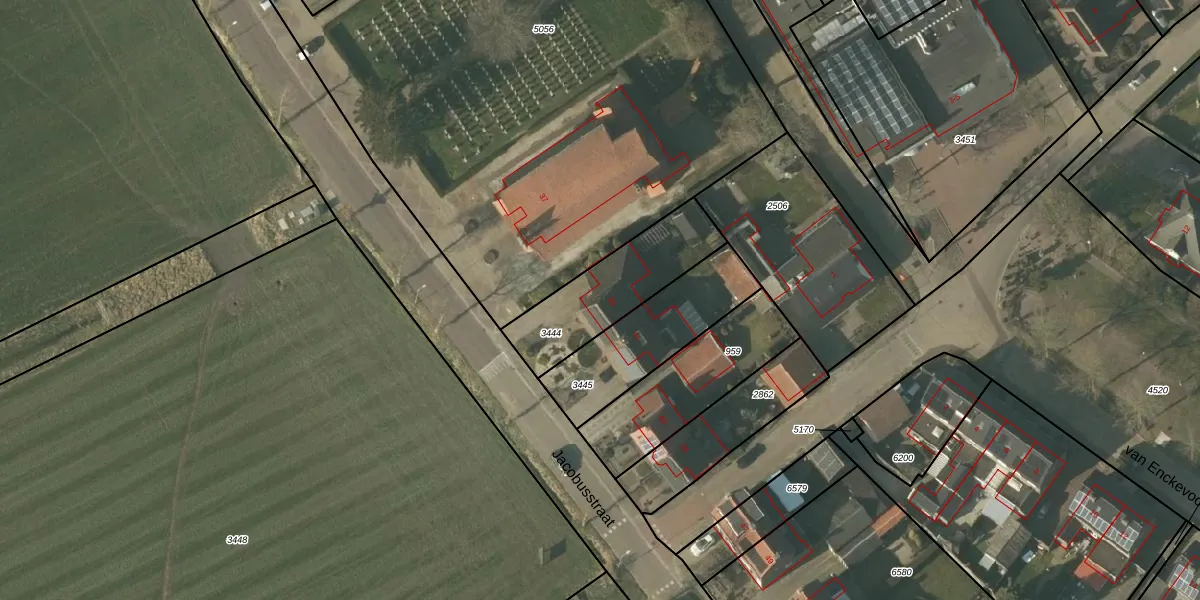 Jacobusstraat 39 is gelegen op kadastraal perceel HDN01G3444. Deze kadastrale aanduiding is uniek en wordt gebruikt door het Kadaster om eigendomsrechten en andere zakelijke rechten vast te leggen. Het perceel maakt onderdeel uit van de kadastrale gemeente Helden.