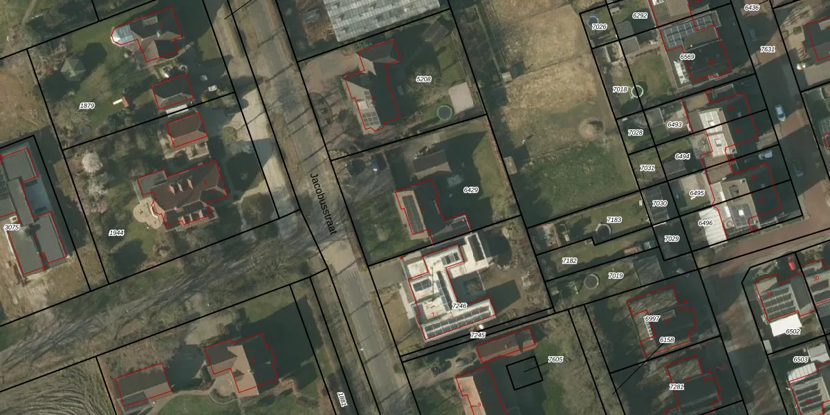 Jacobusstraat 5 is gelegen op kadastraal perceel HDN01G6429. Deze kadastrale aanduiding is uniek en wordt gebruikt door het Kadaster om eigendomsrechten en andere zakelijke rechten vast te leggen. Het perceel maakt onderdeel uit van de kadastrale gemeente Helden.