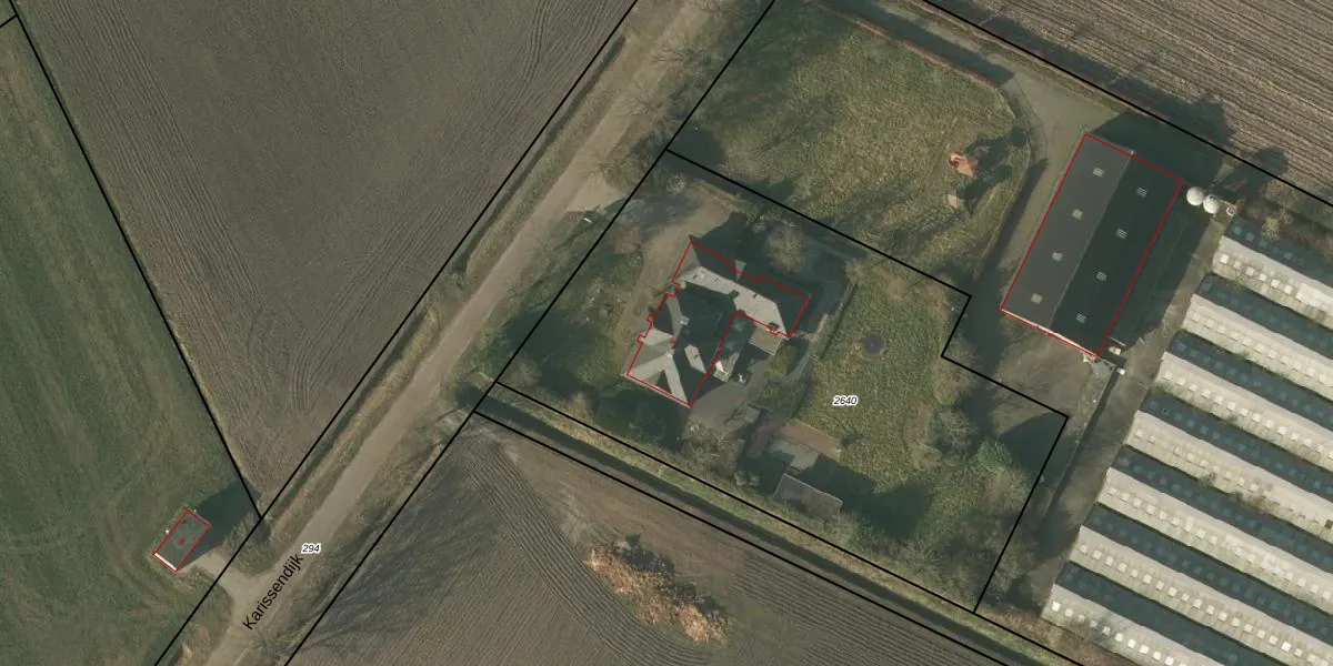 Het perceel waarop Karissendijk 9 staat heeft een oppervlakte van 3018 m². Dit is een zeer groot perceel. De perceeloppervlakte wordt geregistreerd door het Kadaster. Gedetailleerde informatie over de maten van dit perceel kunt u vinden in het rapport Kadastrale kaart met maatvoering van Karissendijk 9.