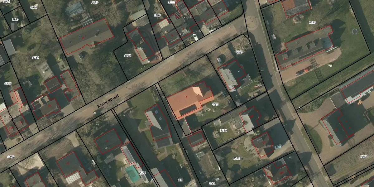 Kempstraat 5 is gelegen op kadastraal perceel HDN01G5559. Deze kadastrale aanduiding is uniek en wordt gebruikt door het Kadaster om eigendomsrechten en andere zakelijke rechten vast te leggen. Het perceel maakt onderdeel uit van de kadastrale gemeente Helden.