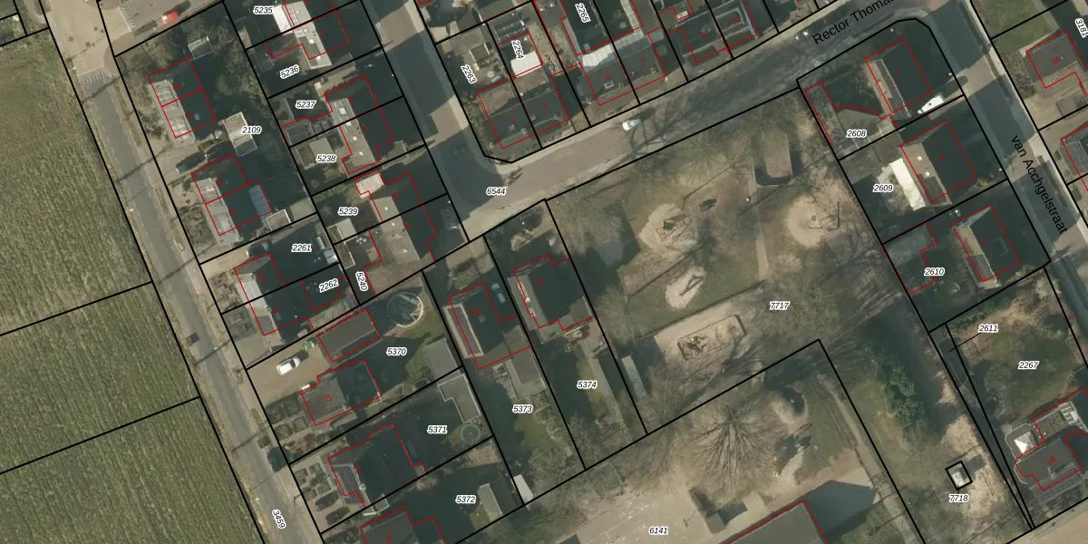 Rector Thomassenstraat 14 is gelegen op kadastraal perceel HDN01G5374. Deze kadastrale aanduiding is uniek en wordt gebruikt door het Kadaster om eigendomsrechten en andere zakelijke rechten vast te leggen. Het perceel maakt onderdeel uit van de kadastrale gemeente Helden.