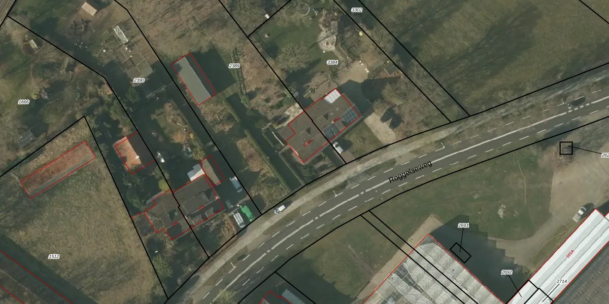 Het perceel waarop Roggelseweg 102-A staat heeft een oppervlakte van 2709 m². Dit is een zeer groot perceel. De perceeloppervlakte wordt geregistreerd door het Kadaster. Gedetailleerde informatie over de maten van dit perceel kunt u vinden in het rapport Kadastrale kaart met maatvoering van Roggelseweg 102-A.