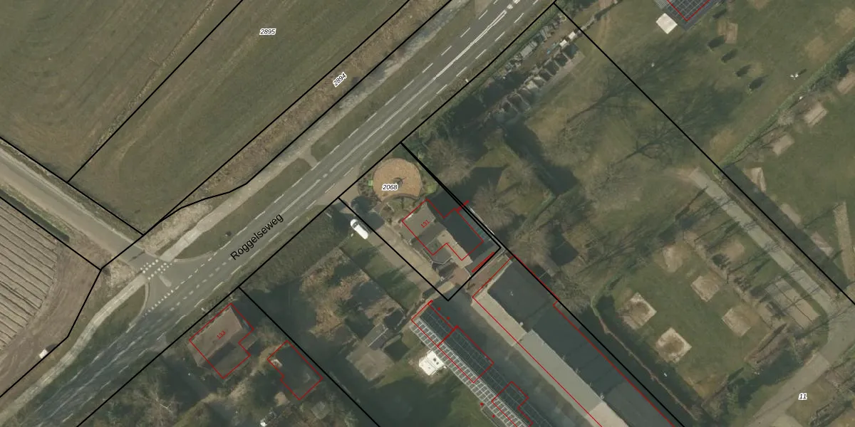 Roggelseweg 131 is gelegen op kadastraal perceel HDN01H2068. Deze kadastrale aanduiding is uniek en wordt gebruikt door het Kadaster om eigendomsrechten en andere zakelijke rechten vast te leggen. Het perceel maakt onderdeel uit van de kadastrale gemeente Helden.