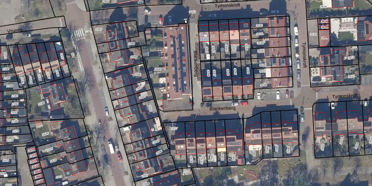 Het perceel waarop Blankenberg 22 staat heeft een oppervlakte van 1020 m². Dit is een zeer groot perceel. De perceeloppervlakte wordt geregistreerd door het Kadaster. Gedetailleerde informatie over de maten van dit perceel kunt u vinden in het rapport Kadastrale kaart met maatvoering van Blankenberg 22.