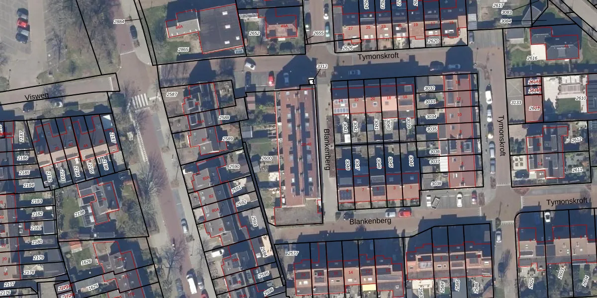 Het perceel waarop Blankenberg 36 staat heeft een oppervlakte van 1020 m². Dit is een zeer groot perceel. De perceeloppervlakte wordt geregistreerd door het Kadaster. Gedetailleerde informatie over de maten van dit perceel kunt u vinden in het rapport Kadastrale kaart met maatvoering van Blankenberg 36.