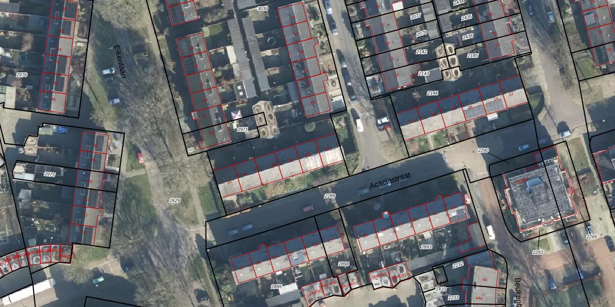 Het perceel waarop Acaciastraat 26 staat heeft een oppervlakte van 3830 m². Dit is een zeer groot perceel. De perceeloppervlakte wordt geregistreerd door het Kadaster. Gedetailleerde informatie over de maten van dit perceel kunt u vinden in het rapport Kadastrale kaart met maatvoering van Acaciastraat 26.