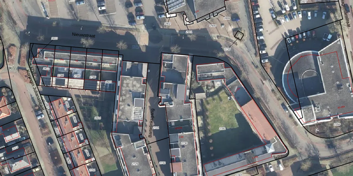 Het perceel waarop Bartelinksgang 23 staat heeft een oppervlakte van 1315 m². Dit is een zeer groot perceel. De perceeloppervlakte wordt geregistreerd door het Kadaster. Gedetailleerde informatie over de maten van dit perceel kunt u vinden in het rapport Kadastrale kaart met maatvoering van Bartelinksgang 23.
