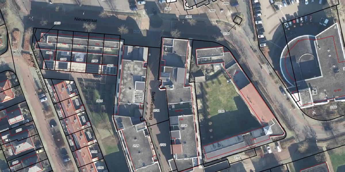Bartelinksgang 7 is gelegen op kadastraal perceel EBG02G2730. Deze kadastrale aanduiding is uniek en wordt gebruikt door het Kadaster om eigendomsrechten en andere zakelijke rechten vast te leggen. Het perceel maakt onderdeel uit van de kadastrale gemeente Eibergen.