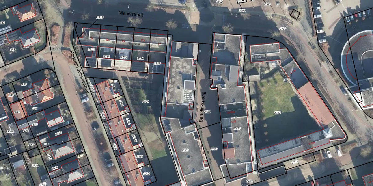 Bartelinksgang 8 is gelegen op kadastraal perceel EBG02G2729. Deze kadastrale aanduiding is uniek en wordt gebruikt door het Kadaster om eigendomsrechten en andere zakelijke rechten vast te leggen. Het perceel maakt onderdeel uit van de kadastrale gemeente Eibergen.
