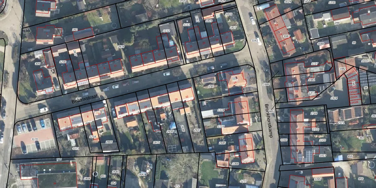 Beatrixstraat 22 is gelegen op kadastraal perceel EBG02G2937. Deze kadastrale aanduiding is uniek en wordt gebruikt door het Kadaster om eigendomsrechten en andere zakelijke rechten vast te leggen. Het perceel maakt onderdeel uit van de kadastrale gemeente Eibergen.