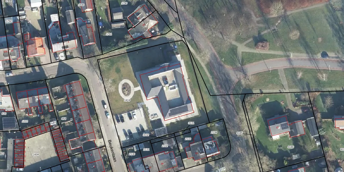Het perceel waarop Beukenlaan 1 staat heeft een oppervlakte van 2767 m². Dit is een zeer groot perceel. De perceeloppervlakte wordt geregistreerd door het Kadaster. Gedetailleerde informatie over de maten van dit perceel kunt u vinden in het rapport Kadastrale kaart met maatvoering van Beukenlaan 1.