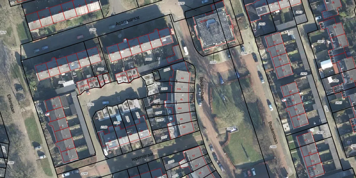 Gebruik de zoekbalk of klik op een perceel voor informatie over de adressen binnen dit perceel.