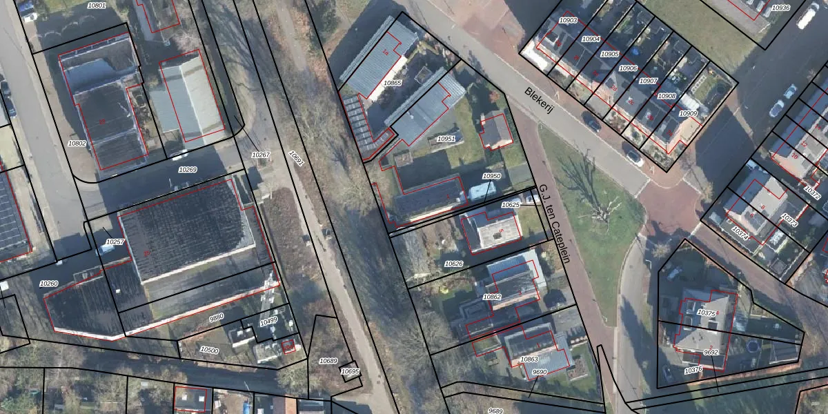 Het perceel waarop Blekerij 1 staat heeft een oppervlakte van 1018 m². Dit is een zeer groot perceel. De perceeloppervlakte wordt geregistreerd door het Kadaster. Gedetailleerde informatie over de maten van dit perceel kunt u vinden in het rapport Kadastrale kaart met maatvoering van Blekerij 1.