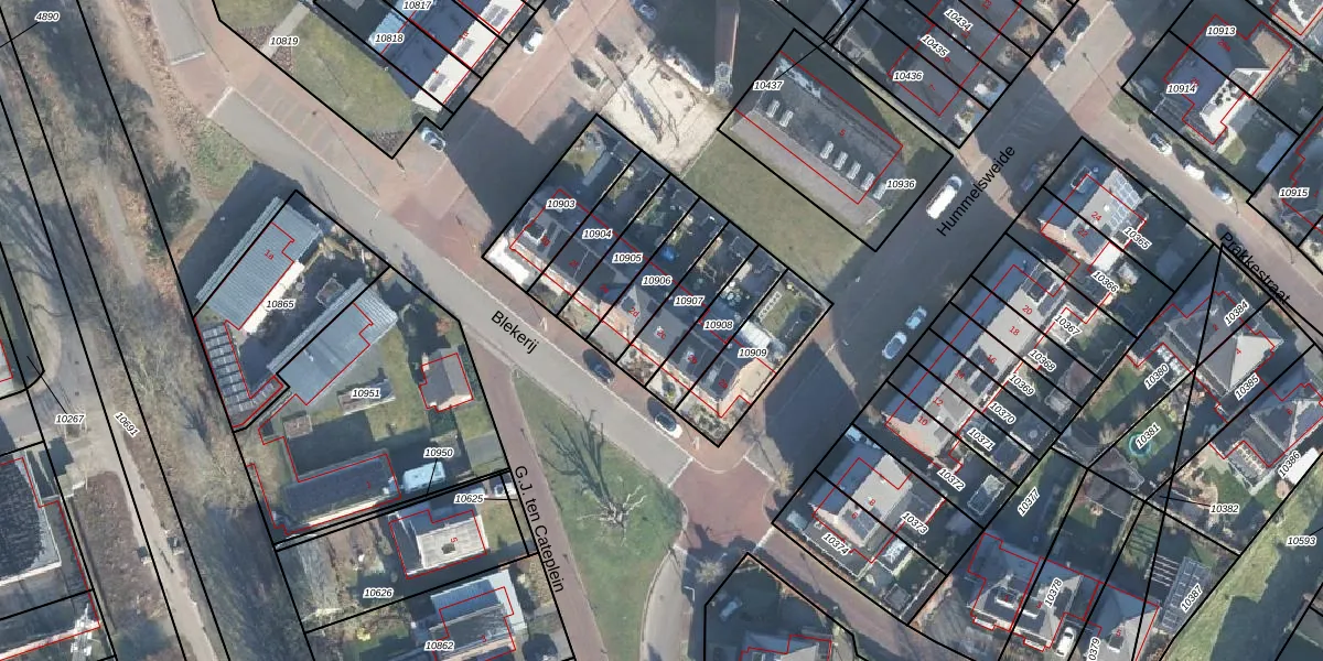 Gebruik de zoekbalk of klik op een perceel voor informatie over de adressen binnen dit perceel.