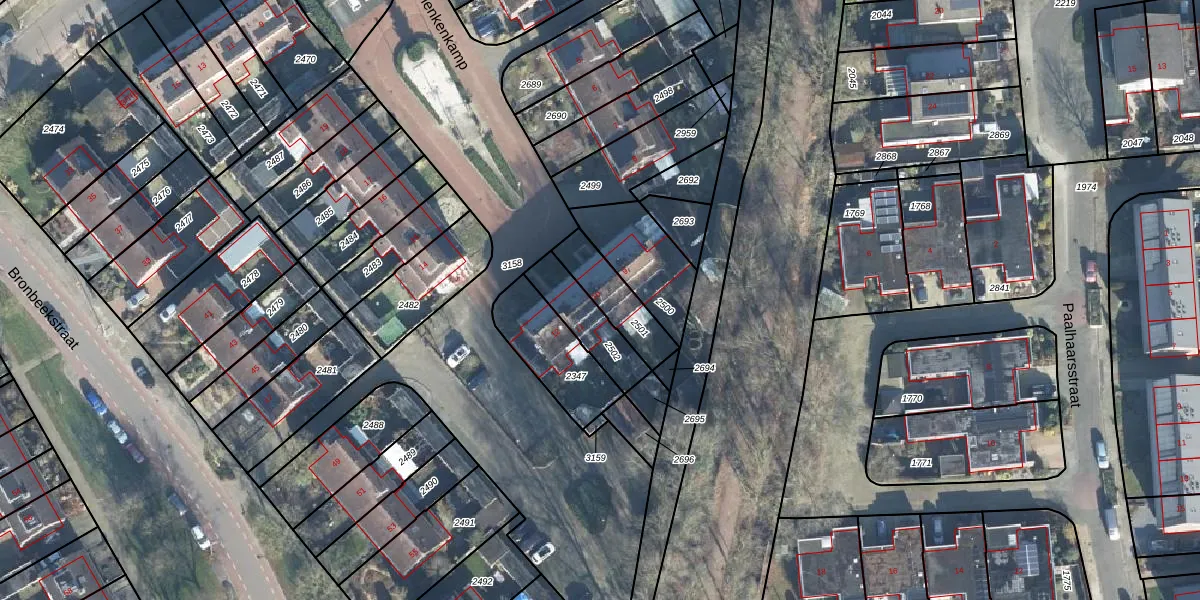 Gebruik de zoekbalk of klik op een perceel voor informatie over de adressen binnen dit perceel.