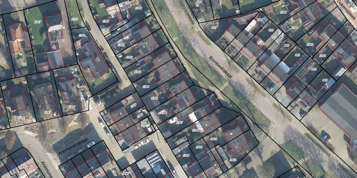 Gebruik de zoekbalk of klik op een perceel voor informatie over de adressen binnen dit perceel.