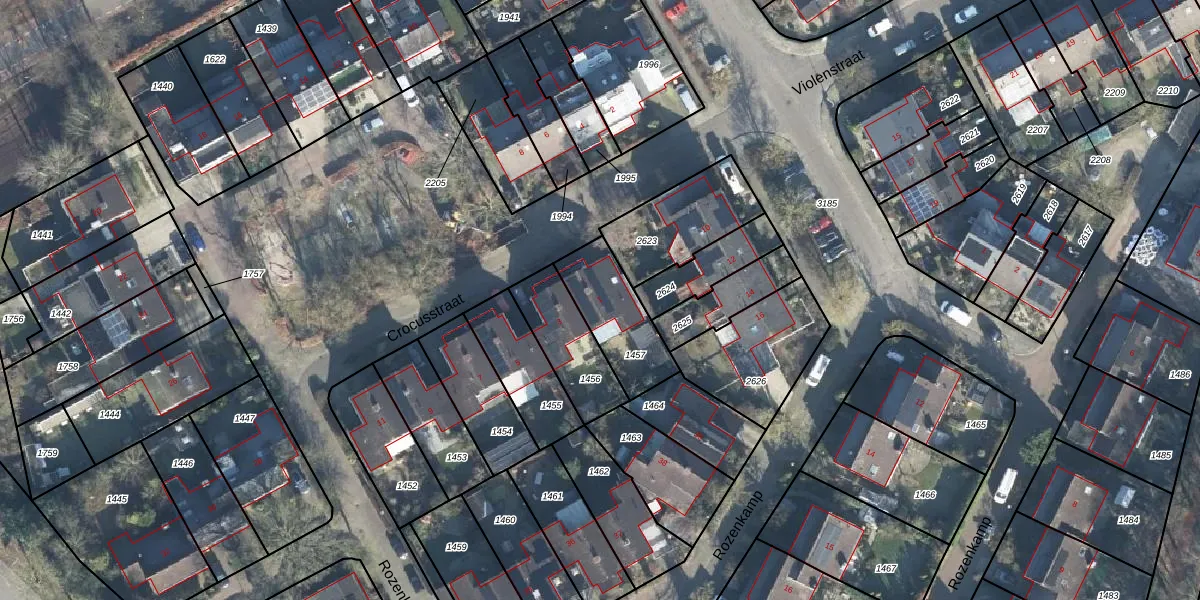 Gebruik de zoekbalk of klik op een perceel voor informatie over de adressen binnen dit perceel.