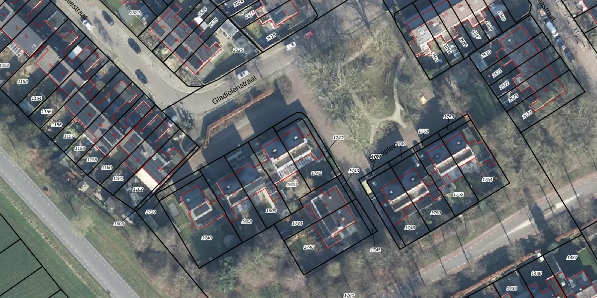 Gebruik de zoekbalk of klik op een perceel voor informatie over de adressen binnen dit perceel.
