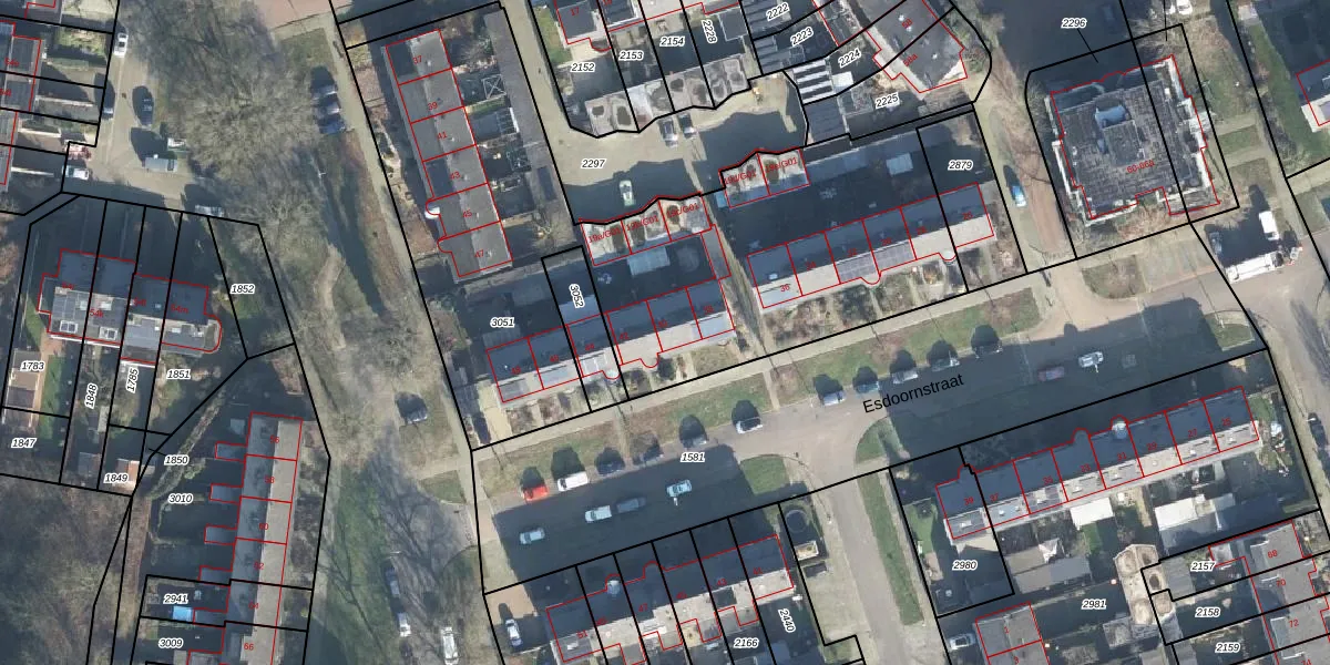Het perceel waarop Esdoornstraat 40 staat heeft een oppervlakte van 2897 m². Dit is een zeer groot perceel. De perceeloppervlakte wordt geregistreerd door het Kadaster. Gedetailleerde informatie over de maten van dit perceel kunt u vinden in het rapport Kadastrale kaart met maatvoering van Esdoornstraat 40.
