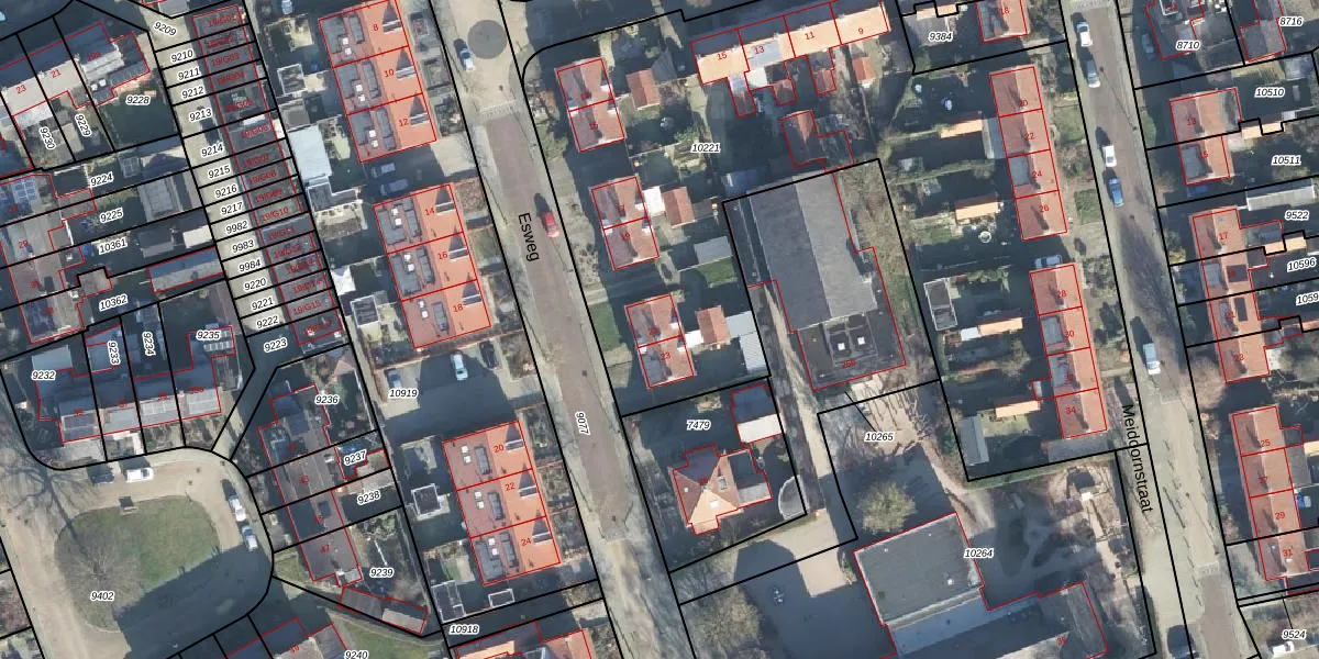 Het perceel waarop Esweg 21 staat heeft een oppervlakte van 4075 m². Dit is een zeer groot perceel. De perceeloppervlakte wordt geregistreerd door het Kadaster. Gedetailleerde informatie over de maten van dit perceel kunt u vinden in het rapport Kadastrale kaart met maatvoering van Esweg 21.