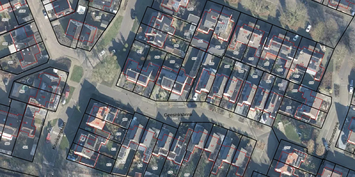 Het perceel waarop Geesinksbrink 7 staat heeft een oppervlakte van 325 m². Dit is een groot perceel. De perceeloppervlakte wordt geregistreerd door het Kadaster. Gedetailleerde informatie over de maten van dit perceel kunt u vinden in het rapport Kadastrale kaart met maatvoering van Geesinksbrink 7.