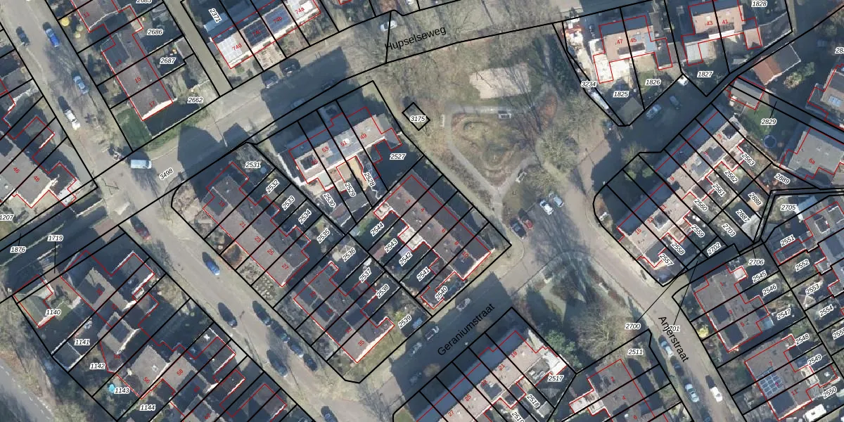 Gebruik de zoekbalk of klik op een perceel voor informatie over de adressen binnen dit perceel.