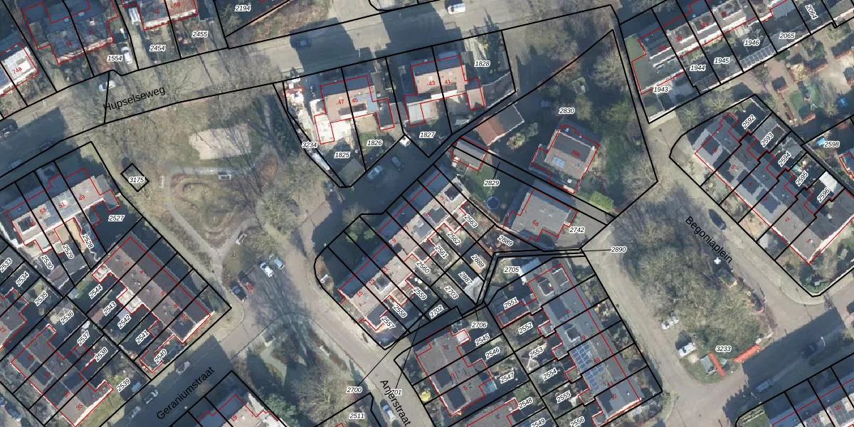 Gebruik de zoekbalk of klik op een perceel voor informatie over de adressen binnen dit perceel.