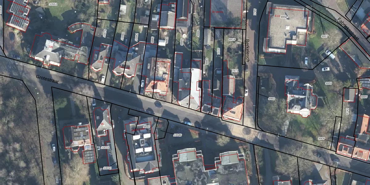 Het perceel waarop Grotestraat 116-a staat heeft een oppervlakte van 599 m². Dit is een groot perceel. De perceeloppervlakte wordt geregistreerd door het Kadaster. Gedetailleerde informatie over de maten van dit perceel kunt u vinden in het rapport Kadastrale kaart met maatvoering van Grotestraat 116-a.