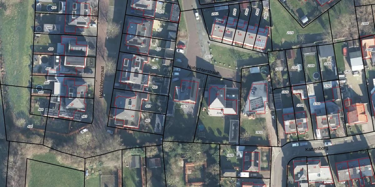 Het perceel waarop Hofrichterstraat 13-g staat heeft een oppervlakte van 671 m². Dit is een groot perceel. De perceeloppervlakte wordt geregistreerd door het Kadaster. Gedetailleerde informatie over de maten van dit perceel kunt u vinden in het rapport Kadastrale kaart met maatvoering van Hofrichterstraat 13-g.