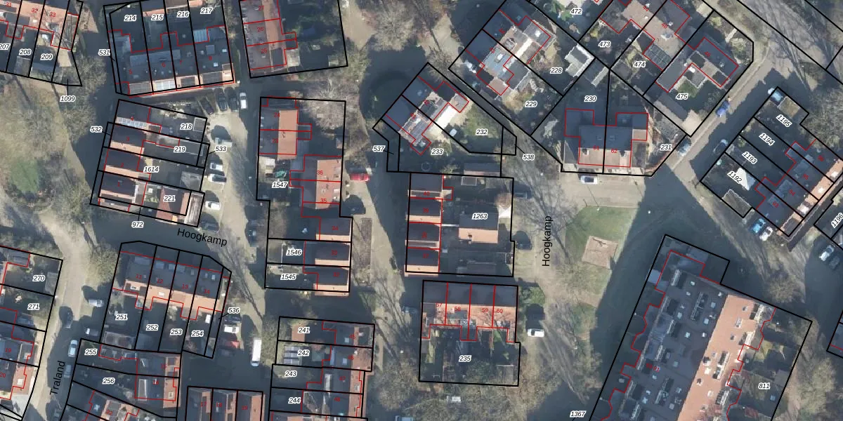 Het perceel waarop Hoogkamp 39 staat heeft een oppervlakte van 583 m². Dit is een groot perceel. De perceeloppervlakte wordt geregistreerd door het Kadaster. Gedetailleerde informatie over de maten van dit perceel kunt u vinden in het rapport Kadastrale kaart met maatvoering van Hoogkamp 39.