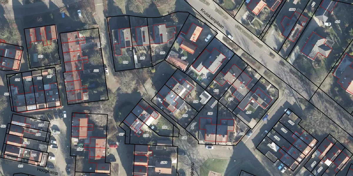 Het perceel waarop Hoogkamp 44 staat heeft een oppervlakte van 301 m². Dit is een groot perceel. De perceeloppervlakte wordt geregistreerd door het Kadaster. Gedetailleerde informatie over de maten van dit perceel kunt u vinden in het rapport Kadastrale kaart met maatvoering van Hoogkamp 44.